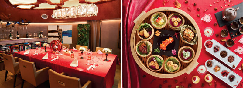 季節のフルーツを使い色鮮やかに仕上げた洋風スイーツと、ゴマ団子やエッグタルト、杏仁豆腐などの中華風スイーツが味のバリエーションを広げます。自家製スコーンはホテルパティシエが焼き上げる中華風ジャスミンを加えた3種類に、様々な味覚のマリアージュを楽しめるライチ/ココナッツミルク/ブルーベリーのディップソースを添えて提供します。飲み物は中国茶を中心に、チャイナテラス・アフタヌーンティーとのバランスを考えた豊富なラインナップを取り揃えています。