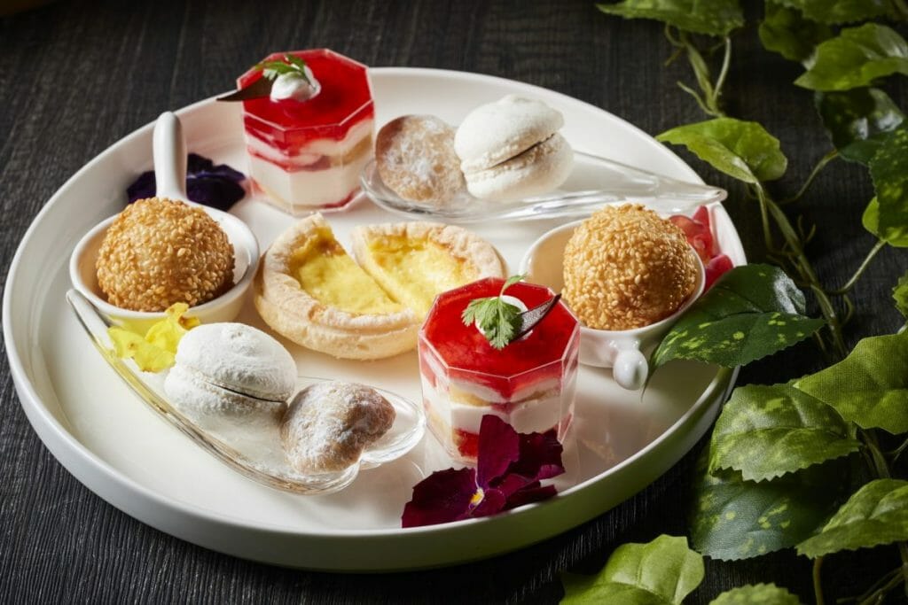 ゴマ団子/エッグタルト/マンゴープリン/杏仁豆腐/ライチムース/メロンショート/ブルーベリータルト/ピスタチオムース/マカロン