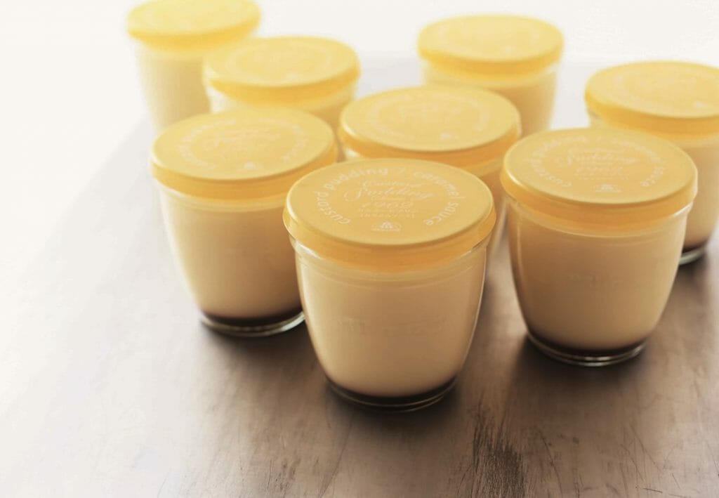 モロゾフのカスタードプリンは厳選された卵、牛乳、砂糖、カラメルにわずかなバニラの香料でつくられています。保存料を一切使用せず、特製のガラス容器でじっくり蒸し焼きにし、卵が自然に固まる力だけを利用することで独特のなめらかな食感に仕上げています。