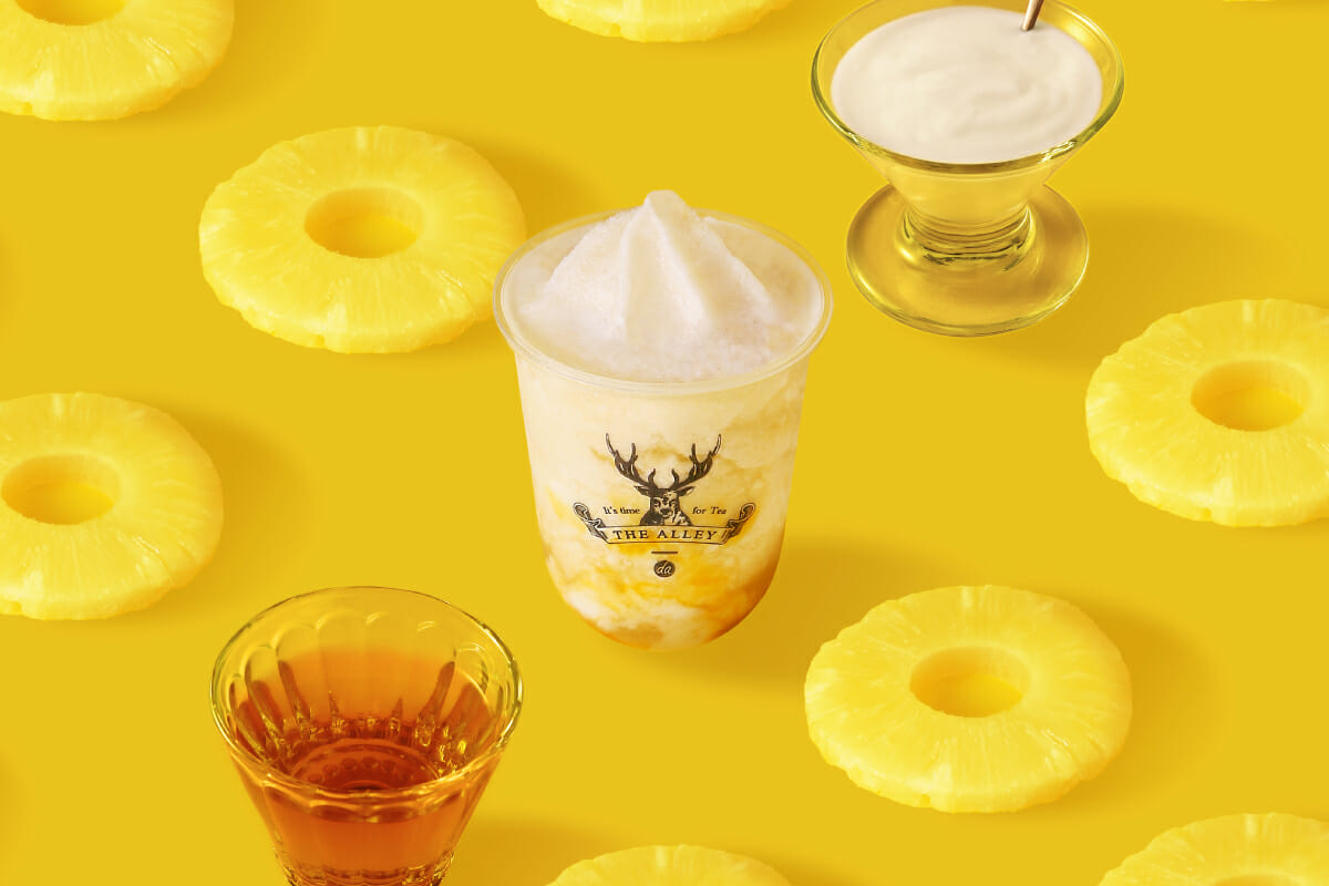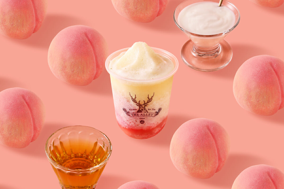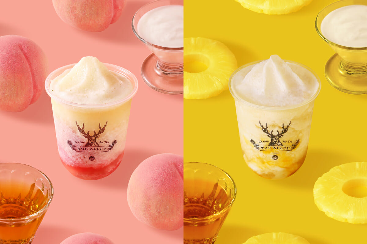 THE ALLEYの茶葉が持つ香りや味わいを隠し味に、これから旬を迎える白桃とパイナップルをスムージーに仕上げ、酸味が爽やかなヨーグルトと合わせました。混ぜながら味わいの変化を楽しめるようになっています。