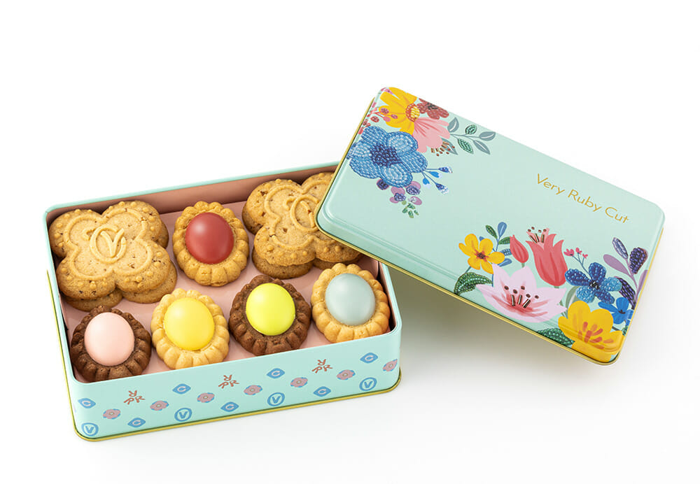 華やかなレッドルビー『ラズベリー』をはじめとした、見た目も美味しさもカラフルな「ベリールビーカット」5種類に、ブランドロゴを大きくあしらったクッキー「ローストナッツ」がそのまま入ったスペシャル缶。