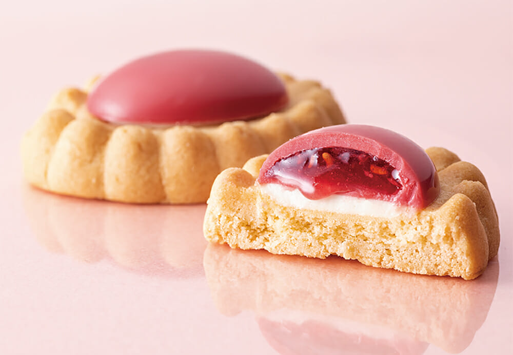 ブランド代表作。果実やナッツのコンフィチュールをとろっととじこめた 贅沢なコクの宝石ショコラを、カリッと香ばしいクッキーに重ねました。