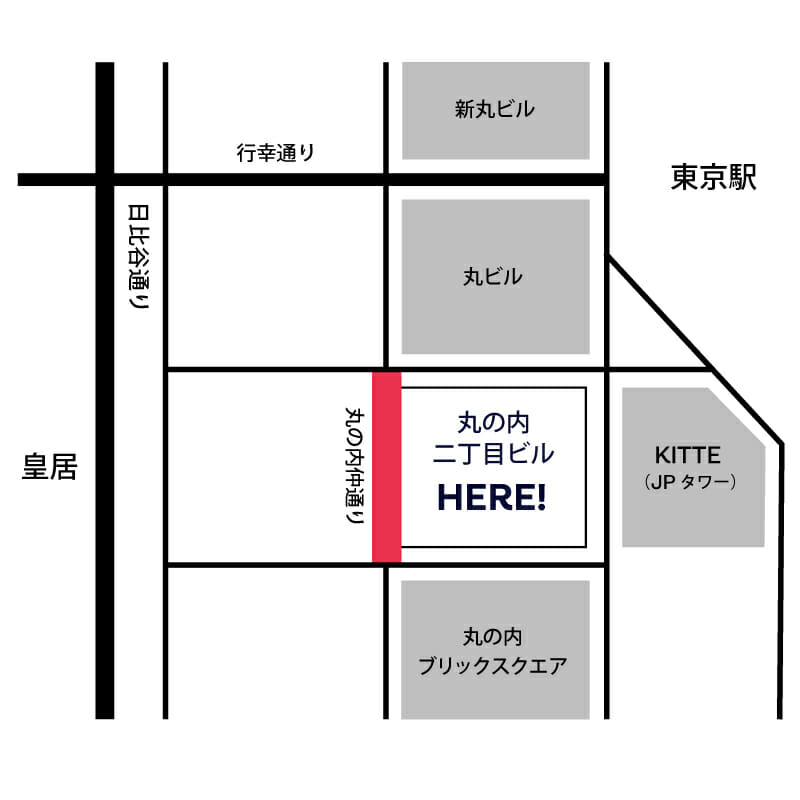 東京都千代田区丸の内2丁目5番地1 丸の内2丁目ビル1F(仲通り側)