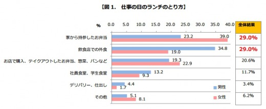 ●ビジネスパーソンの約3割が外食ランチ派。男性のほうが女性より外食比率は高め
