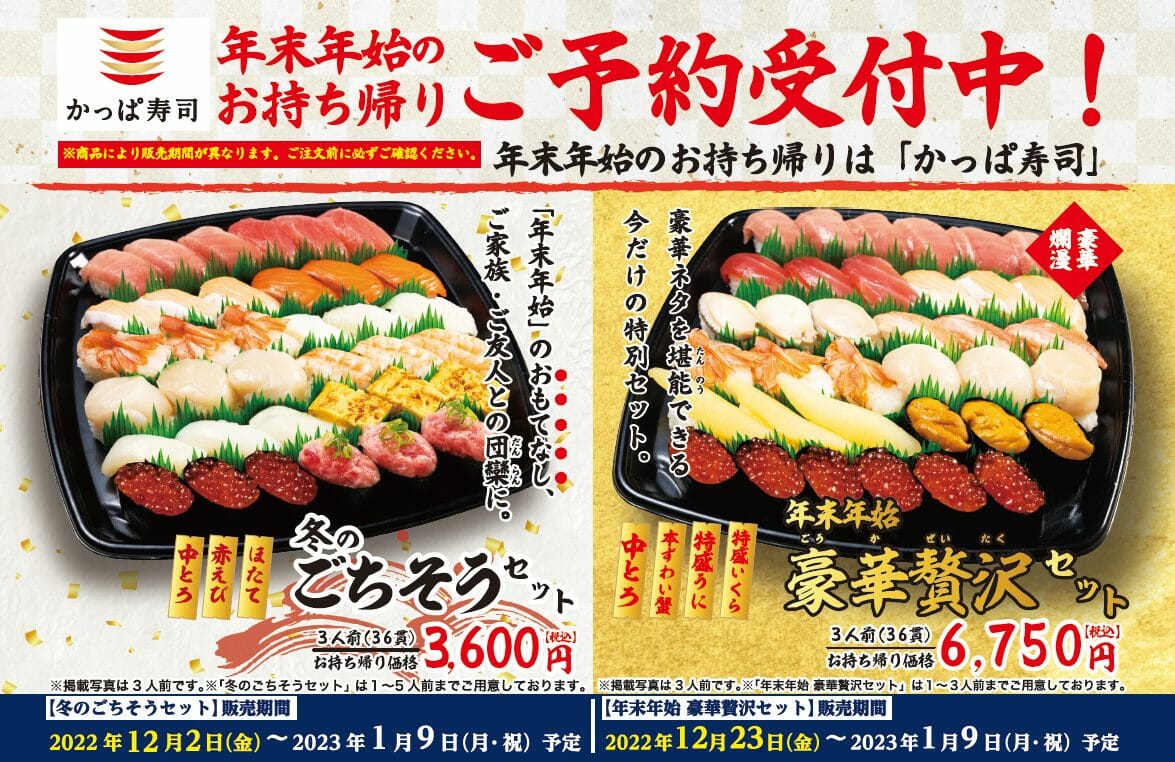 かっぱ寿司 家族でのお祝いにふさわしい年末年始のお持ち帰りセット2種が登場