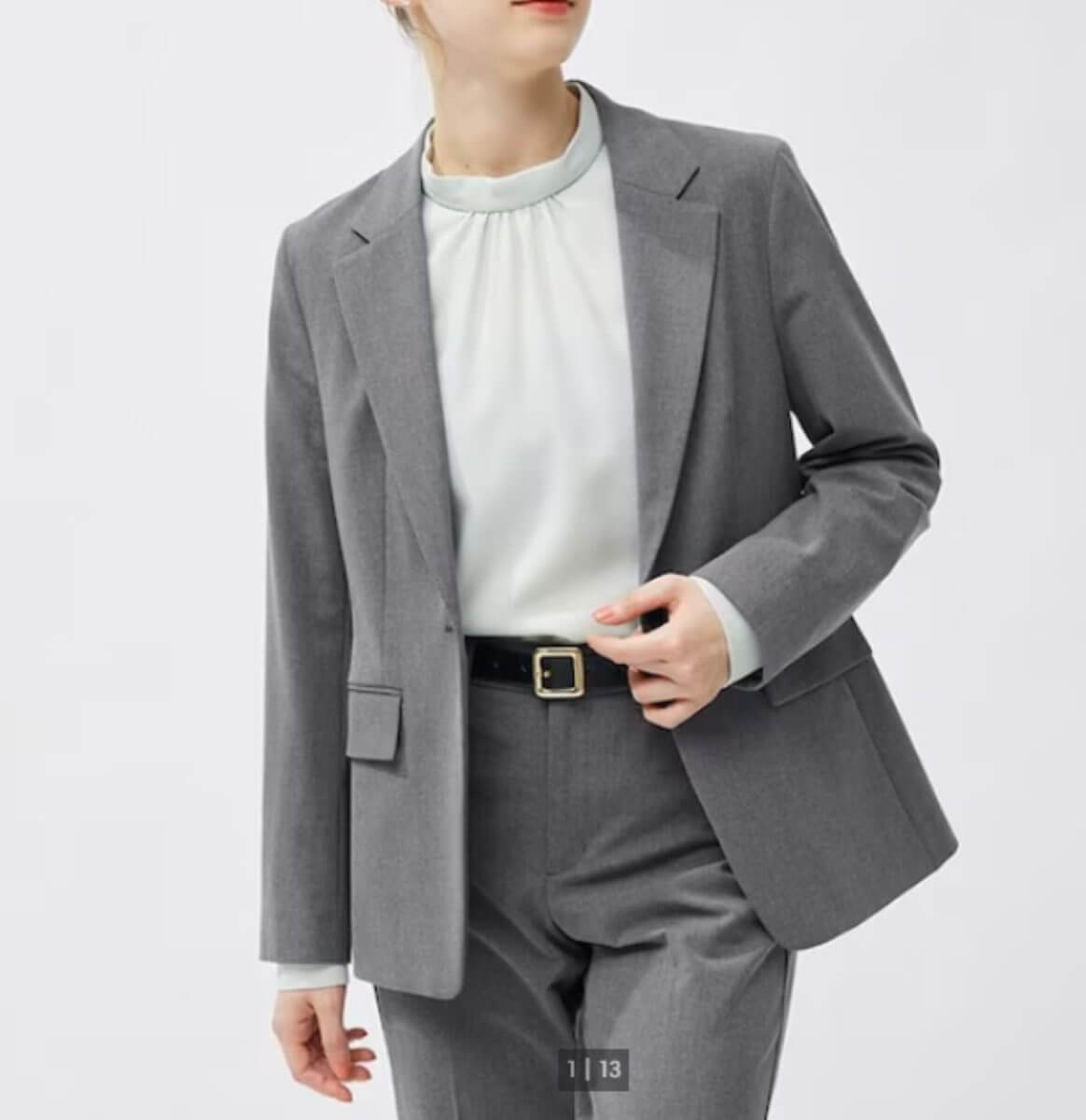 GU公式サイトによると「ウエストをややシェイプさせたシャープなシルエットのジャケット。23年秋冬商品と比較し、オンにもオフにも着やすいよう特に着丈を伸ばしました」とのこと。