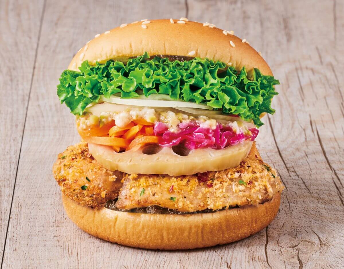第5弾の期間限定「銀だらグリエのフレンチバーガー」は、フレンチの魚料理(ポワソン)をイメージし、香草パン粉をまぶして焼き上げた銀だらを使ったバーガーとなっています。「彩り野菜とオリーブアンチョビソース」では、タプナードソースに素揚げレンコンやキャロットラペ、紫キャベツのマリネをトッピング。「スクランブルエッグとオマール海老ビスクソース」では、ふんわりスクランブルエッグに、オマール海老の濃厚なビスクソースを合わせています。楽しめるのはこの14日間だけ!お見逃しなきよう、ご賞味ください。