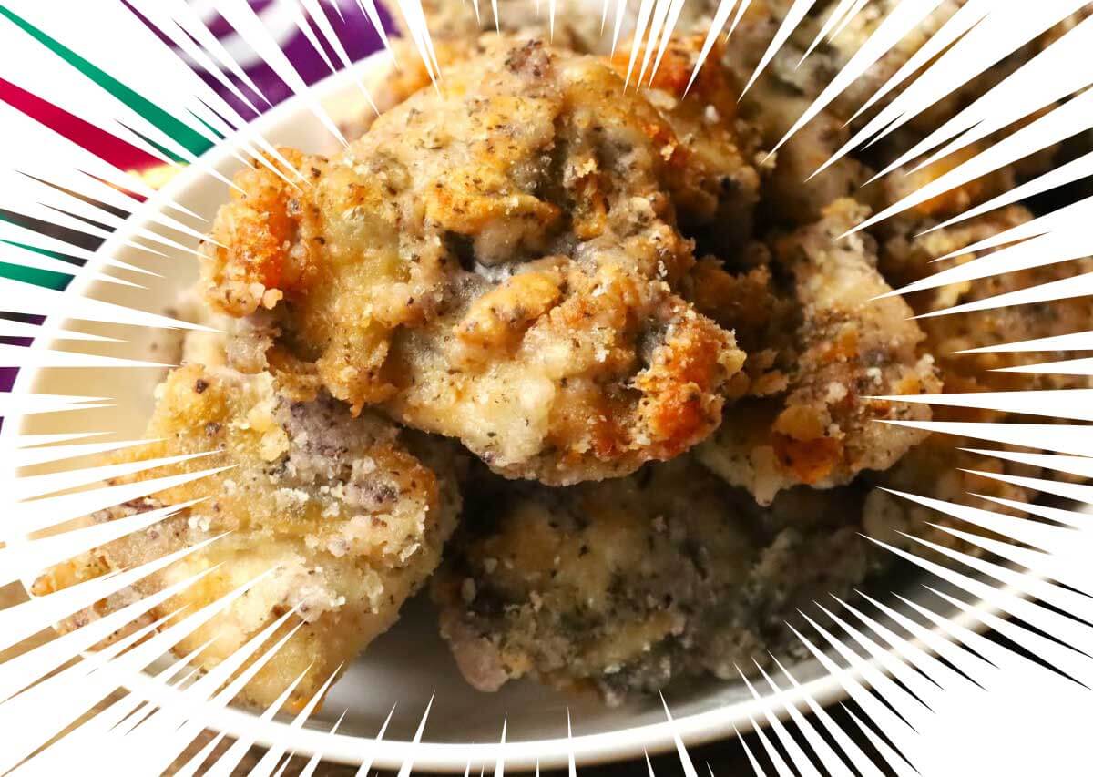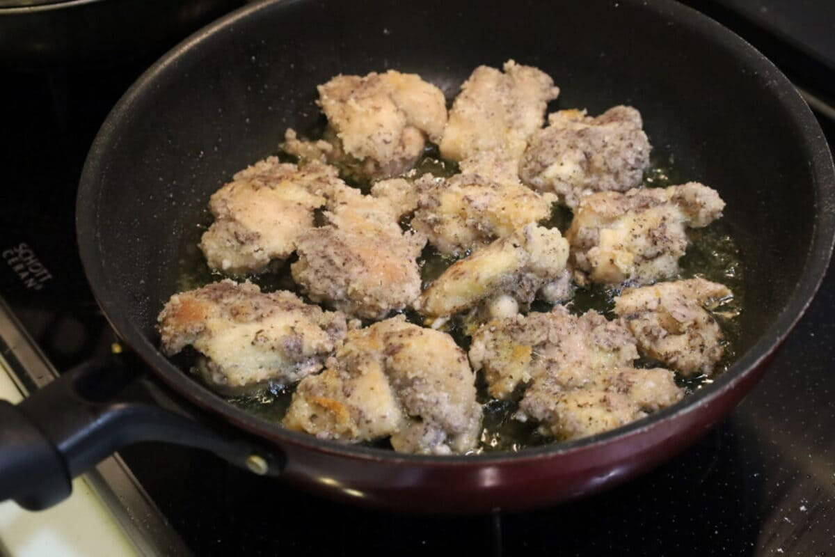 こうすることで、外側にまぶした片栗粉がサクサクになり食感が良くなります。