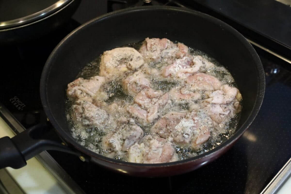 少しずつ温度を上げることで鶏もも肉のジューシーさを保つことができます。