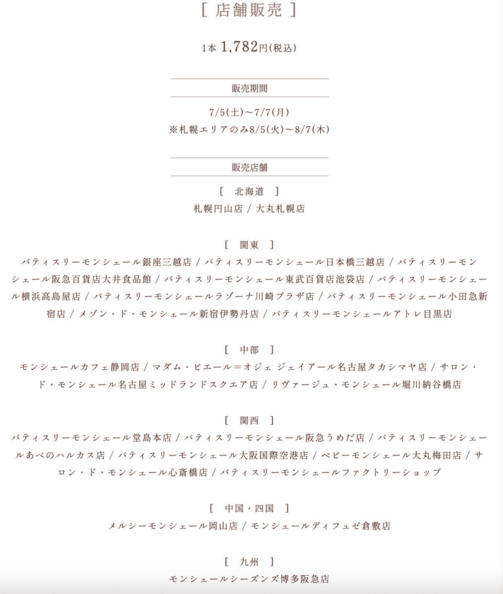店舗販売は、7月5日から7日までとなっており、取り扱い店舗は以下の通り。