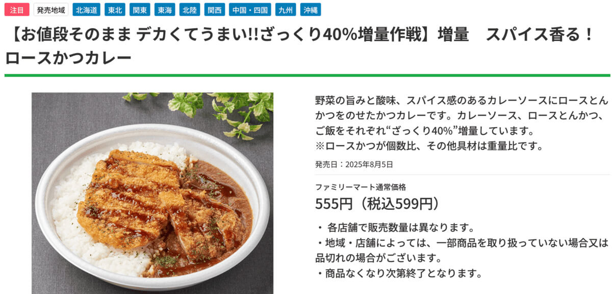 「ファミマの40%増量カツカレー、サイズがアホすぎる」