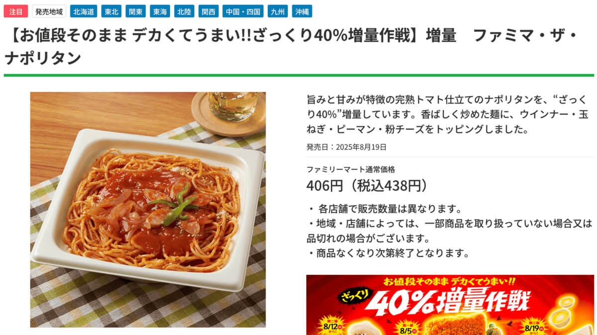 3週目となる8月19日からは「ファミマ・ザ・ナポリタン」も”ざっくり40%増量”でお買い得になっています。