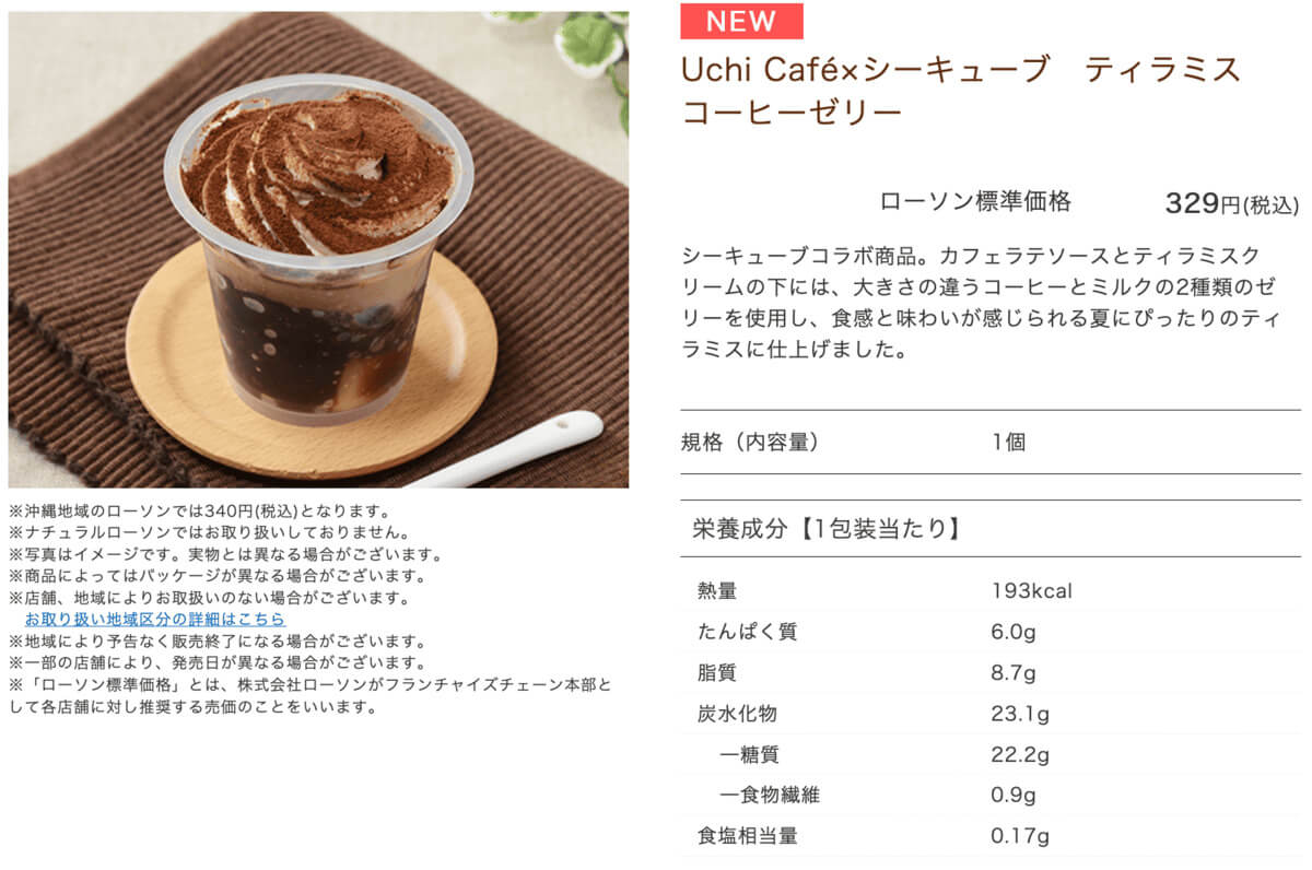 ローソン「Uchi Café×シーキューブ ティラミスコーヒーゼリー」が話題です。