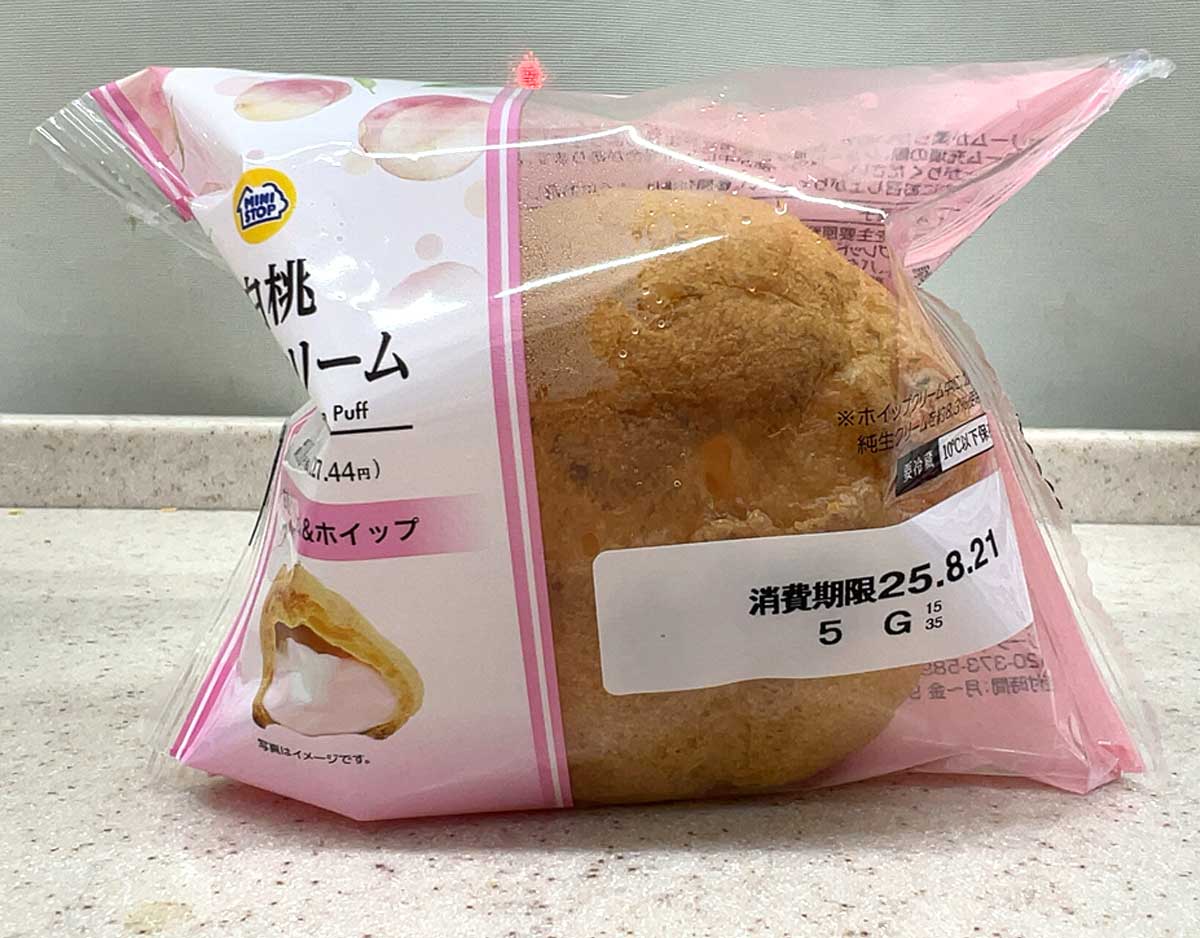 こちらが、ミニストップ「白桃シュークリーム」。