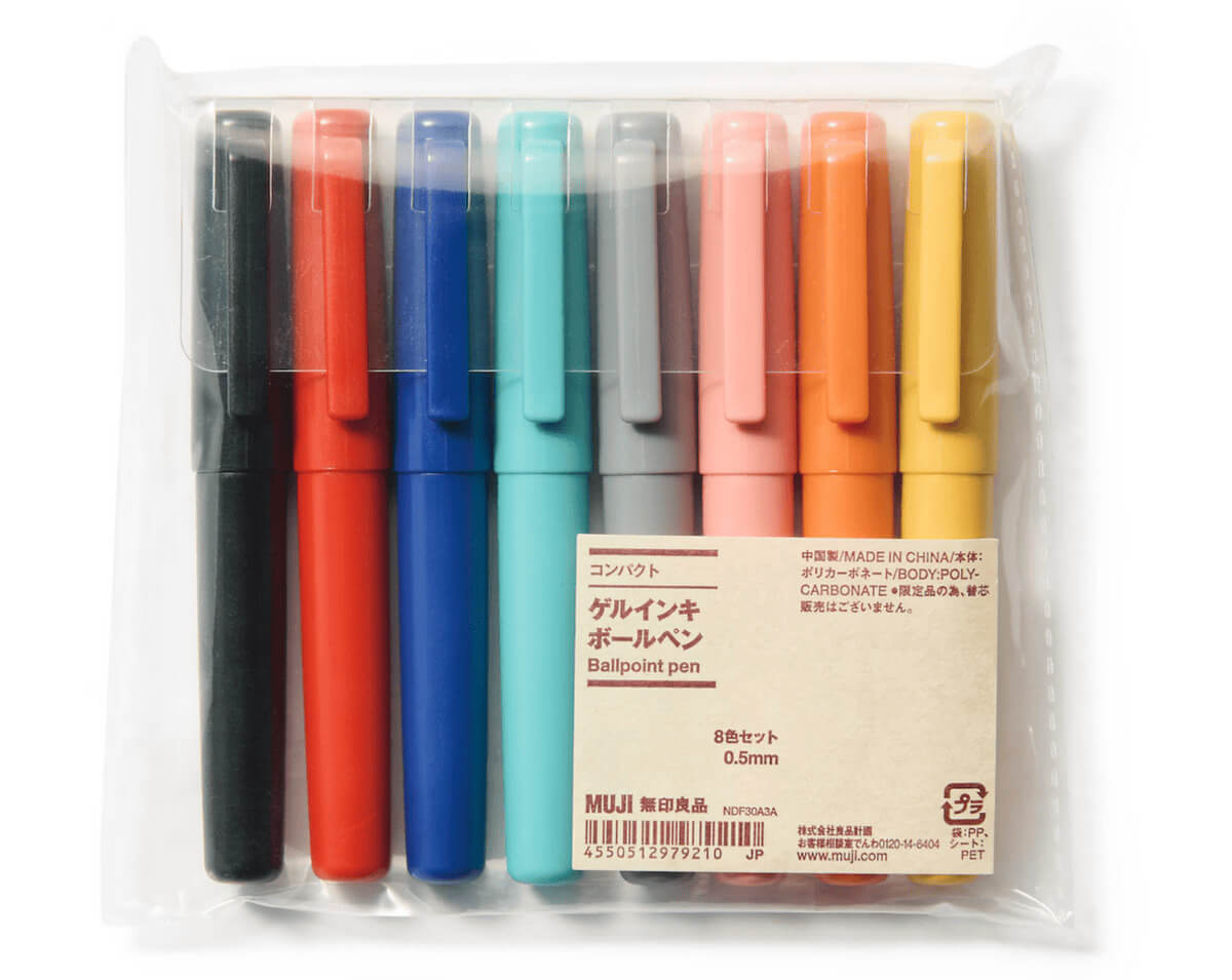無印良品の「コンパクトゲルインキボールペン 8色セット 0.5mm」です。