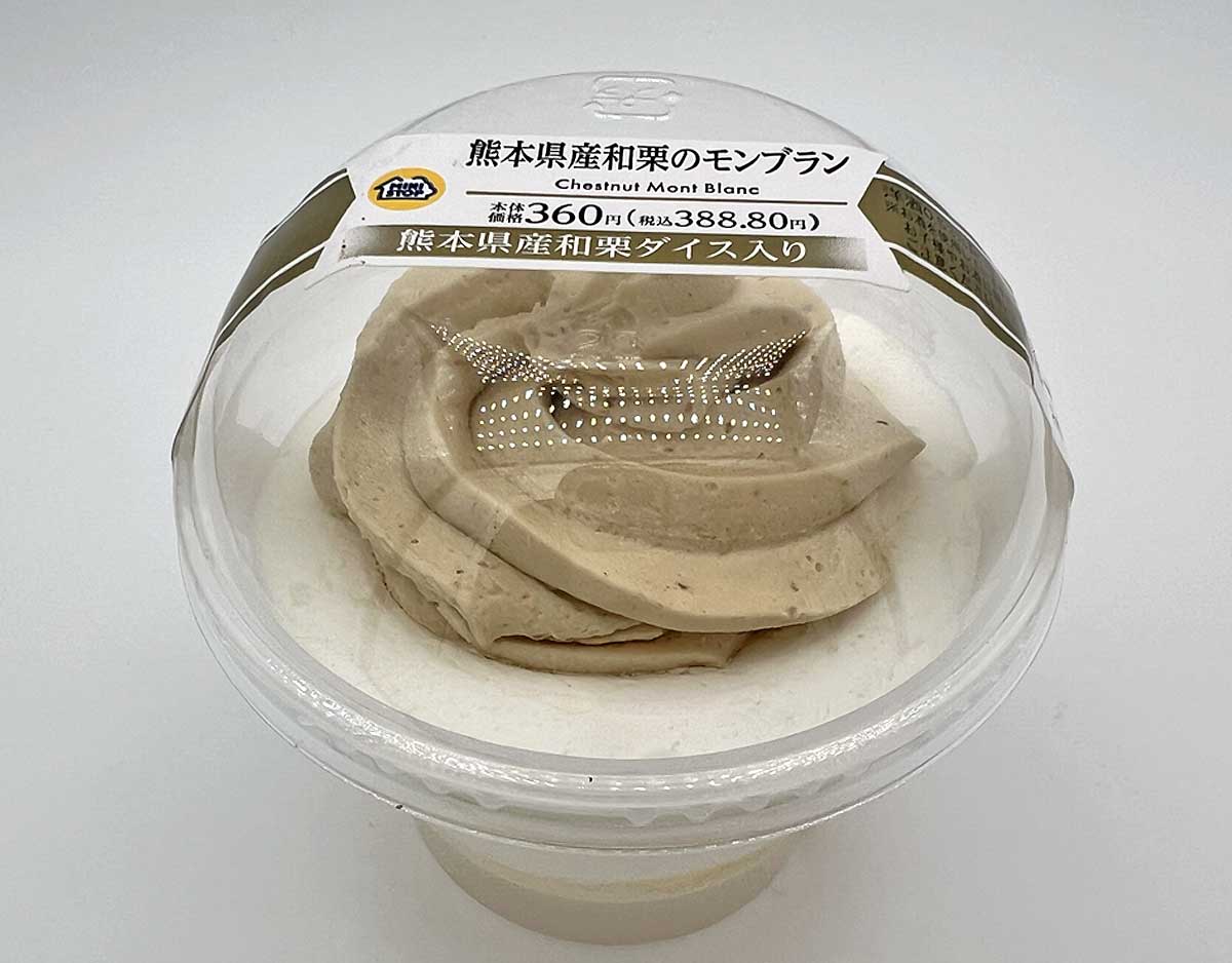 こちらが、ミニストップの「熊本県産和栗のモンブラン」本体価格360円(税込388.80円)。