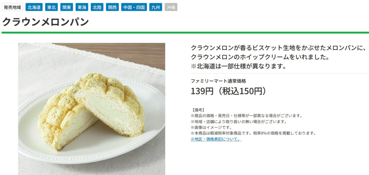 クラウンメロンは高級フルーツの代名詞です。等級によって価格は違いますが、静岡県産の標準的なものでも5000〜6000円前後します。150円でクラウンメロンを楽しめる菓子パンはお買い得といえるのではないでしょうか。