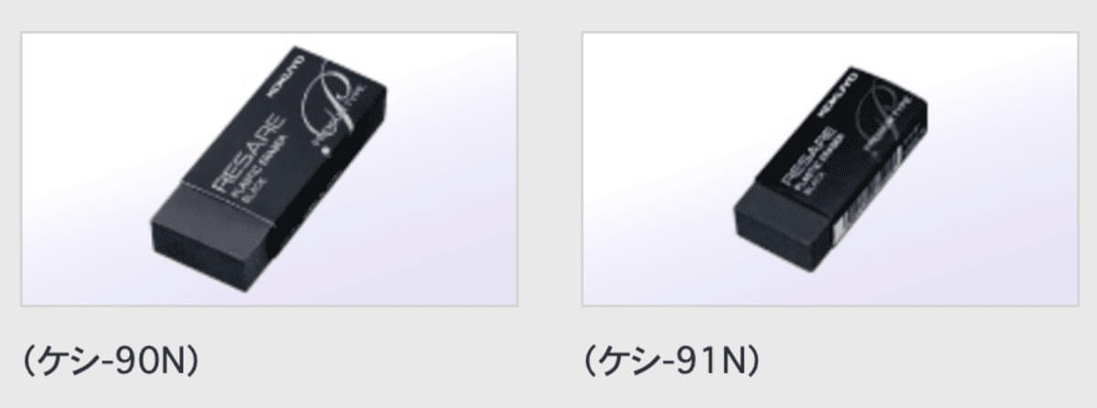 さらに「ケシ-90N」「ケシ-91N」シリーズは、黒色タイプを採用。消しゴム表面の汚れが目立ちにくく、長く清潔感を保てるのが特徴です。