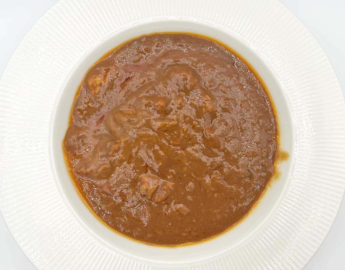 コリアンダー、クミン、カルダモンなど数種のスパイスを組み合わせた奥深い香りと、牛肉の旨みと、炒めたまねぎやトマトペーストの甘みが特徴。