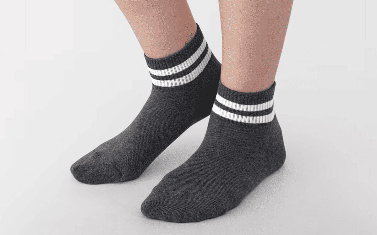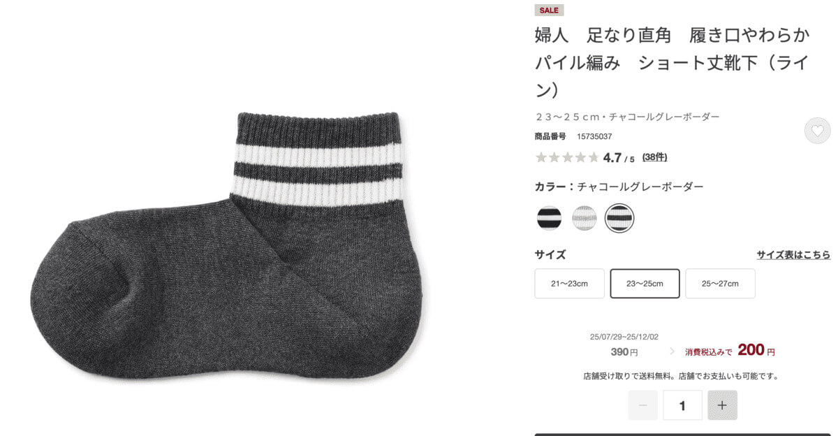 無印良品の「婦人 足なり直角 履き口やわらか パイル編み ショート丈靴下(ライン)」が値下げとなり話題となっています。