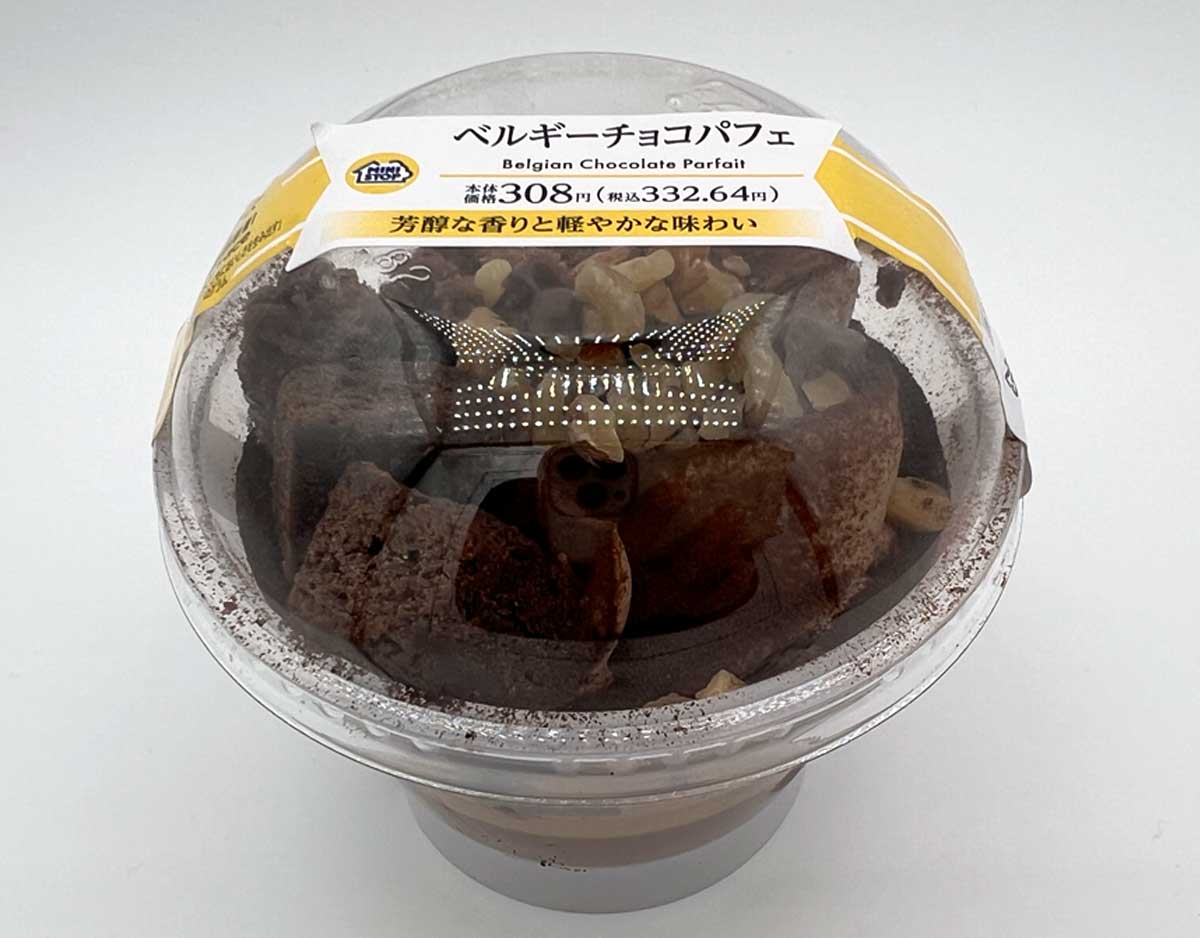 こちらが話題のベルギーチョコパフェ本体価格308円(税込332.64円)。