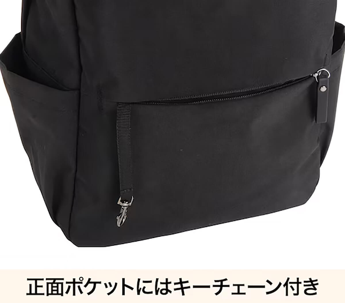また、正面ポケットの内側には、鍵の紛失を防ぐキーチェーンが付属しています。