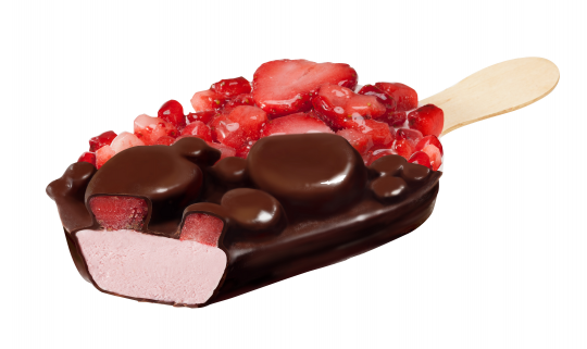 近年、付加価値のあるちょっと贅沢な商品が人気を集めているなか、ミニストップではフローズンいちごをアイスの上にふんだんにトッピングした、見た目も華やかなプレミアムなアイスを発売。いちご果肉を混ぜ込んだ濃厚なアイスとなめらかな口どけのチョコの組み合わせを楽しめるようになっている。