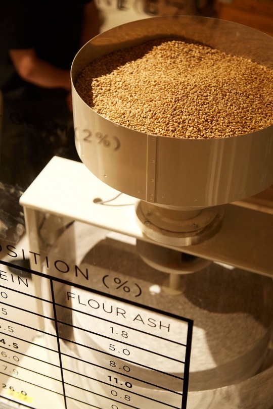 北陸の畑へ赴き小麦の玄麦を買い付け、その玄麦を店内の石臼で自家製粉してから製麺。挽きたて小麦の格別な甘みと香りを堪能できるようになっている。