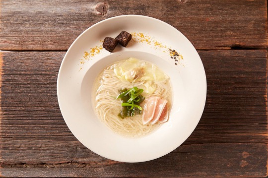 スープは魚介+野菜で優しい味わい☺️麺は玄麦を石臼でひいて作った自家製極細麺繊細~!器のフチには味変アイテムのカラスミ粉と、炭化したネギの粉を纏わせた帆立のコンフィが♡もうラーメンの域を超えてる! pic.twitter.com/cnJSD0HCbl— めぐ【抜け殻】 (@meguuuu0210) 2016年12月24日