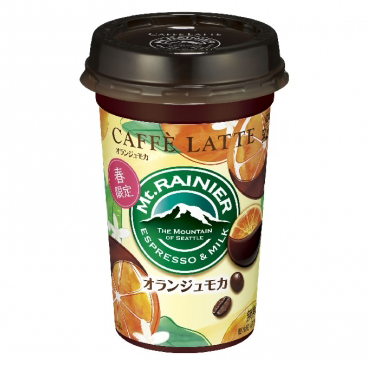 「マウントレーニア カフェラッテ オランジュモカ」は、フランス生まれの洋菓子「オランジェット」(オレンジピールのチョコレートがけ)をイメージしたフレーバーコーヒーで、チョコレートの濃厚な味わいの中にオレンジの爽やかで甘酸っぱい香りが広がるようになっている。