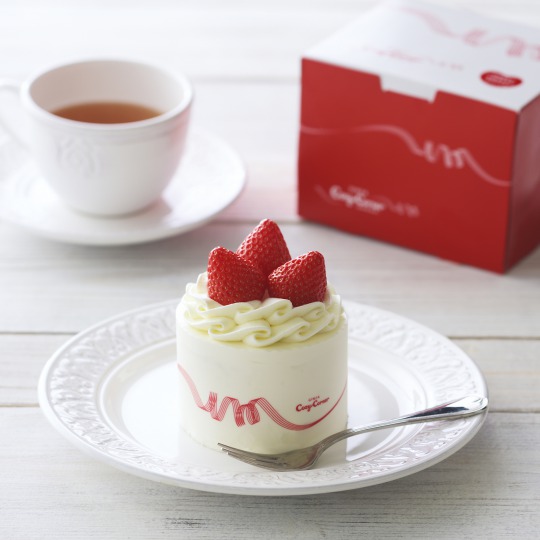 「コージープリンセス」は、スポンジで甘酸っぱい苺生クリームをサンドしたプチデコレーションケーキ。「プリンセス」のドレスのように生クリームをフリル状に絞ったひとりじめサイズのプチデコレーション。味わいはもちろん、フリル状に絞った生クリームの中央に苺を1粒ちょこんと飾ったキュートなデザインも人気。今回は、デコレーションの苺が値段そのままでなんと3粒に増量。1日限りの特別仕様で販売する。