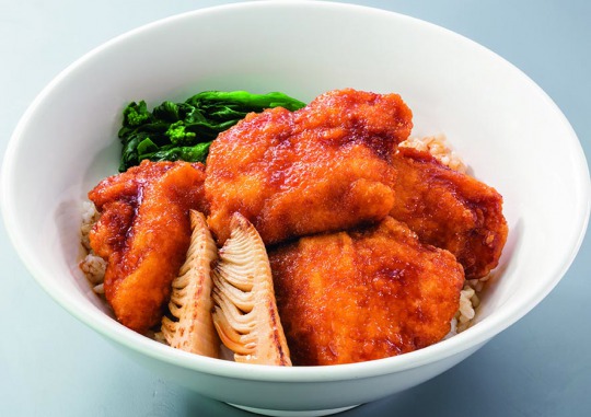 サクッとジューシーなチキンカツを特製の甘醤油タレで仕上げた。