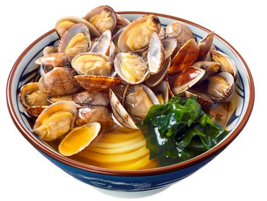 約250gの山盛りのあさりを殻つきで煮るため、旨味と香りが引き立ち、ふっくらとした食感を味わえるようになっている。また、貝のうまみ成分やわかめのミネラルなどがたっぷり。 丸亀製麺自慢のかつお節ベースのかけだしに、あさりの旨味がたっぷり染み出た煮汁を合わせ、香り豊かな風味が特長となっている。