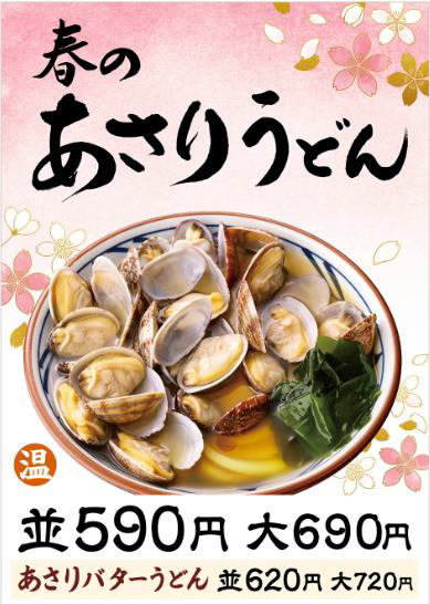 株式会社トリドールホールディングスが展開する「丸亀製麺」は、『春のあさりうどん』を全国の丸亀製麺で、2017年3月8日から4月下旬まで販売する。