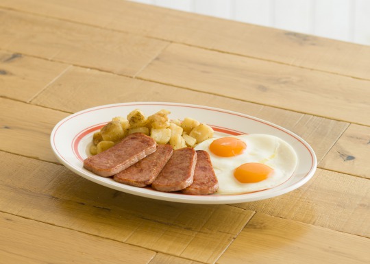 更に、期間中は「ミート&エッグス」や「オムレツ」の付け合せに『スパム®むすび』を選択できるようになっている。本期間中だけの限定特別サービスとなっている。