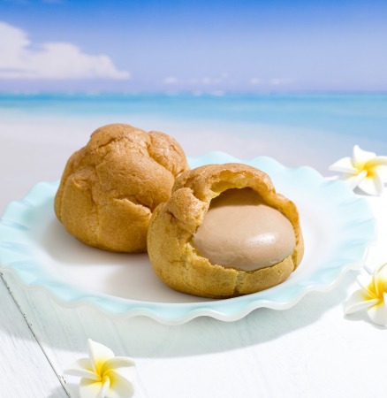 宮古島産雪塩を隠し味に使ったクリームを、さっくり香ばしいシュー皮に詰めた、夏のおやつにぴったりな、後味すっきりクリームシュー。