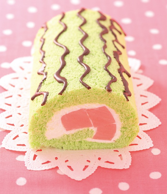 説明:すいかとメロンフレーバーのクリームをかわいい模様の生地で巻いた一品。