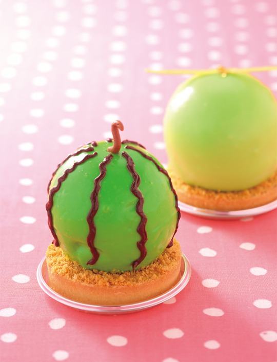 (左)練乳とスイカのムースタルト (右)静岡メロンのムースタルト