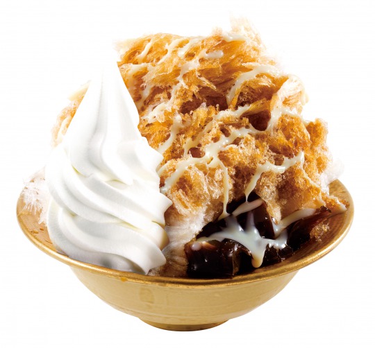 珈琲店ならではの、おすすめのかき氷。コメダの珈琲を使用したオリジナルシロップと、店舗で手作りしているコーヒーゼリーの組み合わせは、まさに食べるアイスコーヒー。おすすめトッピングのソフトクリームと相性抜群。