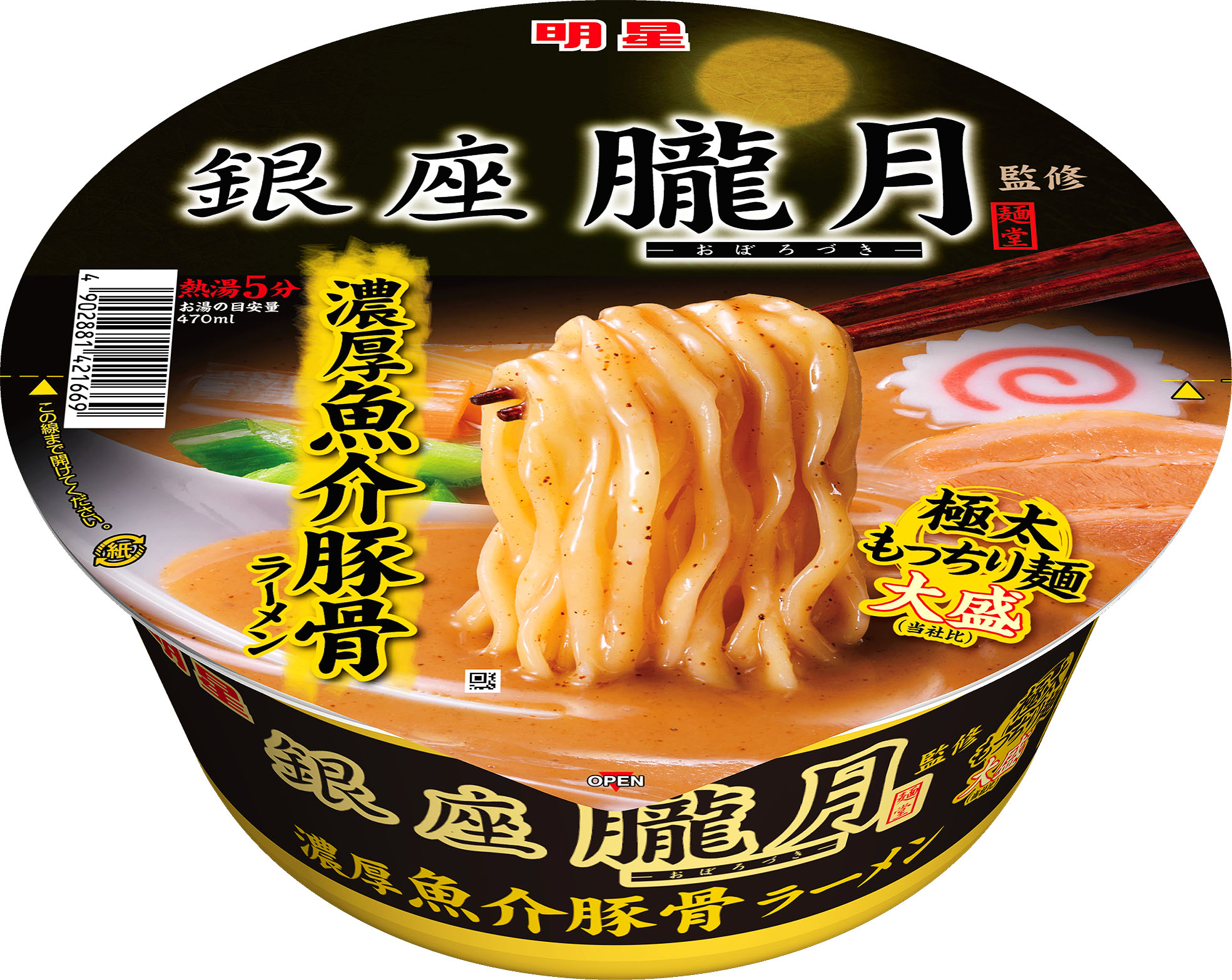明星食品株式会社は、どんぶり型カップめん「明星 銀座 朧月監修 濃厚魚介豚骨ラーメン 大盛」を、2017年6月26日(月)に全国で新発売する。