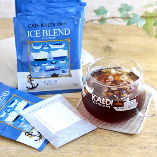 カフェカルディ ドリップコーヒー アイスブレンドは、濃厚な苦味と、ブラジル豆本来の甘さが楽しめる、アイスコーヒーにピッタリなブレンド。ミルクや砂糖にもよく合うので、カフェオレにもオススメ。もちろんホットでも美味しく飲むことができるようになっている。