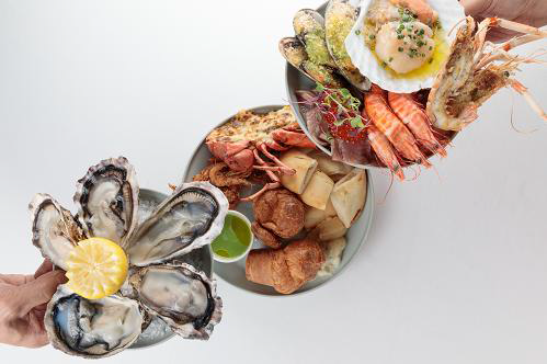 新鮮なシーフードをオーストラリアから調達。ランチはオージーが大好きなローカルフードを新鮮なサラダバーとともに。ディナーはロブスターや魚介を豪快に盛り合わせたシーフードプラッターがおすすめ。オセアニアの大地と海の恵みとおいしいワインを存分に味わえるようになっている。