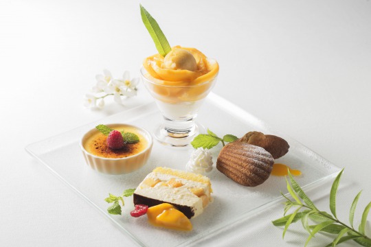 フレッシュマンゴー・濃厚マンゴーシャーベットの他、フレッシュヴァーベナで香り付けしたブランマンジェとジュレ等、希少なフレッシュヴァーベナと旬のマンゴーのマリアージュを楽しめる、スペシャルパフェ。
