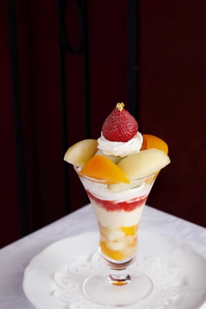 “最後まで美味しく味わっていただきたい”という想いを込め、パフェグラスの下層までフルーツゼリーや果物のコンポートなどを盛り込んだパフェは、アイスクリームやソルベもメインのフルーツを使った自家製。オレンジや赤など元気いっぱいの夏色を身にまとった、今ここでしか味わえないパフェで真夏の銀座を満喫することができる。