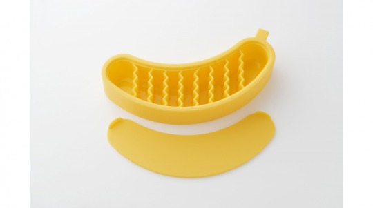 容器にバナナを挟んで冷凍庫に入れるだけで、簡単にスライスされた状態の冷凍バナナが作れるシリコン製の調理器具。ギザギザの断面のフローズンバナナができるので、見た目がユニークであると共にヨーグルトやチョコレートソースに絡めやすく、様々な調理アレンジを楽しむことができる。