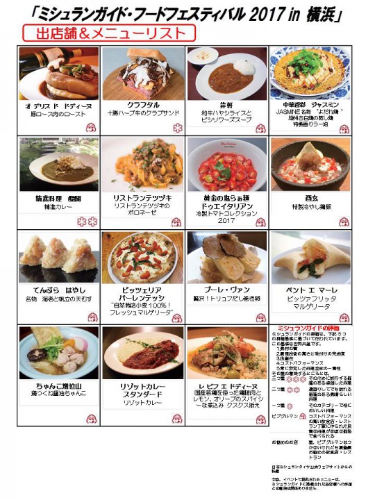 そしてこの度、「ミシュランガイド・フードフェスティバル2017 in 横浜」の出店舗とメニューが全決定した。