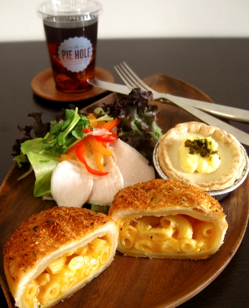 「The Pie Hole L.A.」では、アメリカで馴染み深いパイの文化に親しみを持って欲しいという思いから、朝食、ランチ、ディナー等、すべてのシチュエーションで楽しめる品揃えで提供している。今回販売する「モーニングセット」は、 The Pie Hole L.A.こだわりの100%オーガニックコーヒーと手ごろなサイズのハンドパイをワンコインで楽しめるようになっている。「ランチセット」は、週替わりのスウィートパイと4種類の中から選択できるセイボリーパイに、チキンサラダを添えたボリューム満点のワンプレートのセットになっている。