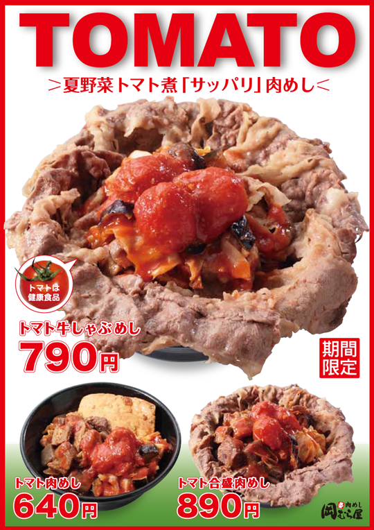 アークダイニング株式会社は、都内で2店舗展開している肉めし専門店「岡むら屋」にて “トマト肉めし”を8月21日(月)から期間限定で販売する。