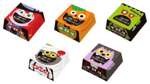 また、ハロウィン企画のBOXタイプは、ジャックランタンやミイラ男など、ハロウィンのお化けたちをあしらった全5種類の箱で登場。箱を重ねると、お化けの顔と体の組み合わせが楽しめるようになっている。味は、ハロウィン限定の<パンプキンビス>と、ビスケットをミルクチョコで包んだ<ビス>の2種類。