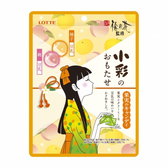 「湯葉と豆腐の店 梅の花」監修による、柚子豆乳味と桃豆乳味の2種類のキャンディをアソート。